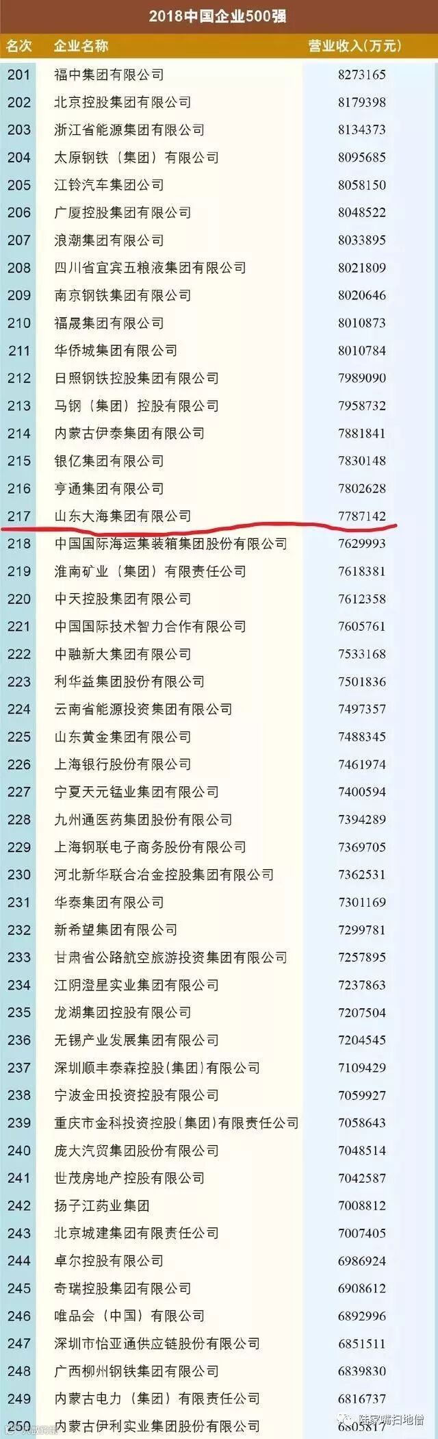 要知道,在两个月前的2018年9月1-2日,由中国企业联合会、中国企业家协会在西安主办“2018中国500强企业高峰论坛”中,山东大海集团还登上了中国企业500强榜单,名列217位。