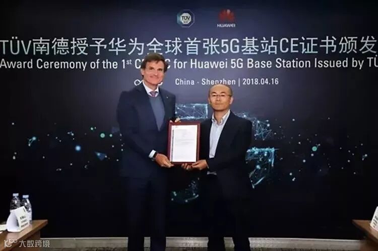 今年4月,德国认证机构“TÜV南德意志集团日前已向华为发放了首张5G产品CE-TEC证书。