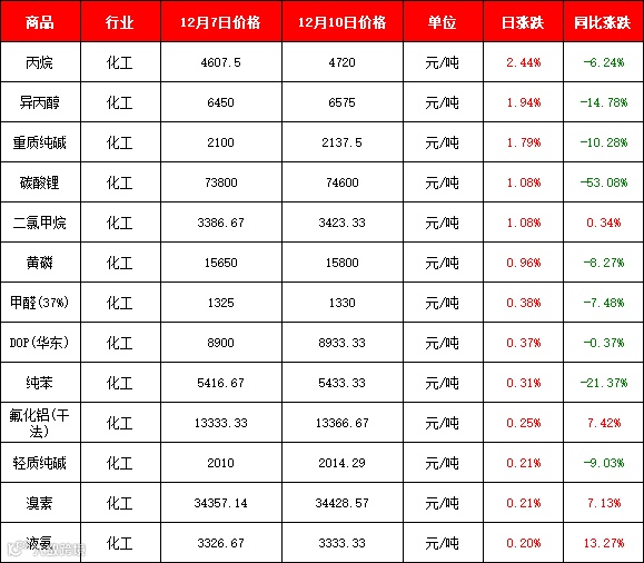 纯碱:本周轻质碱报价在2000-2150元/吨,重质碱报价在2100-2300元/吨,上调50-80元/吨。价格上涨的原因部分厂家去库存基本完成,年末供应偏紧,以及冬季运输难度增加,综合促使纯碱行情上涨。