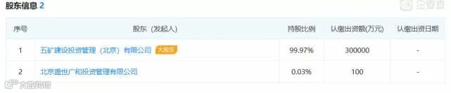 据记者查证,北京盛世广业投资管理有限公司大股东为五矿建设投资管理(北京)有限公司。