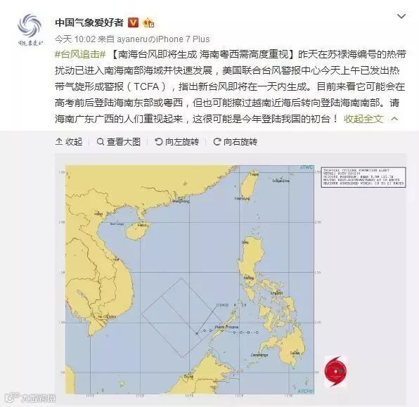 目前台风形势比较复杂,