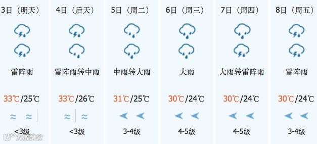 预计,未来三天我市处副热带高压边缘不稳定区域,多雷雨。