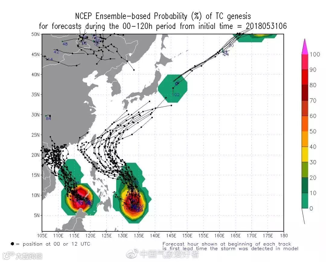 5月31日两个台风胚胎已经出现,一个是位于苏禄海的99W,在广东阳江东南约1700公里;还有一个90W在菲律宾以东、帕劳附近的太平洋洋面上,距离广东汕头约2300公里。