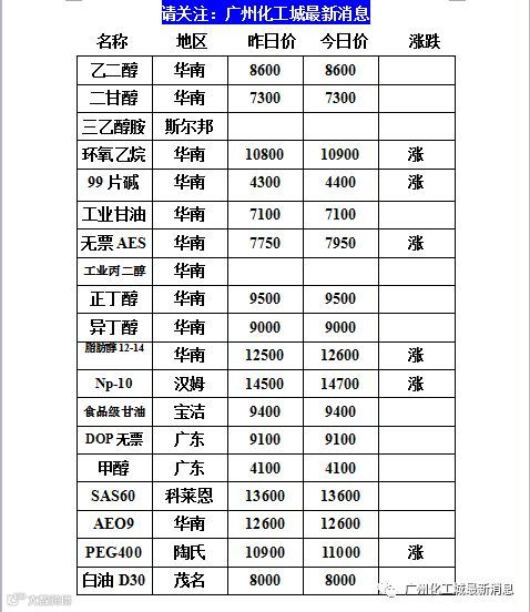 导读:提示:点击↑上方"广州化工城最新消息"关注我!最近原料经常变动,所以没有经常报价!望大家理解!
