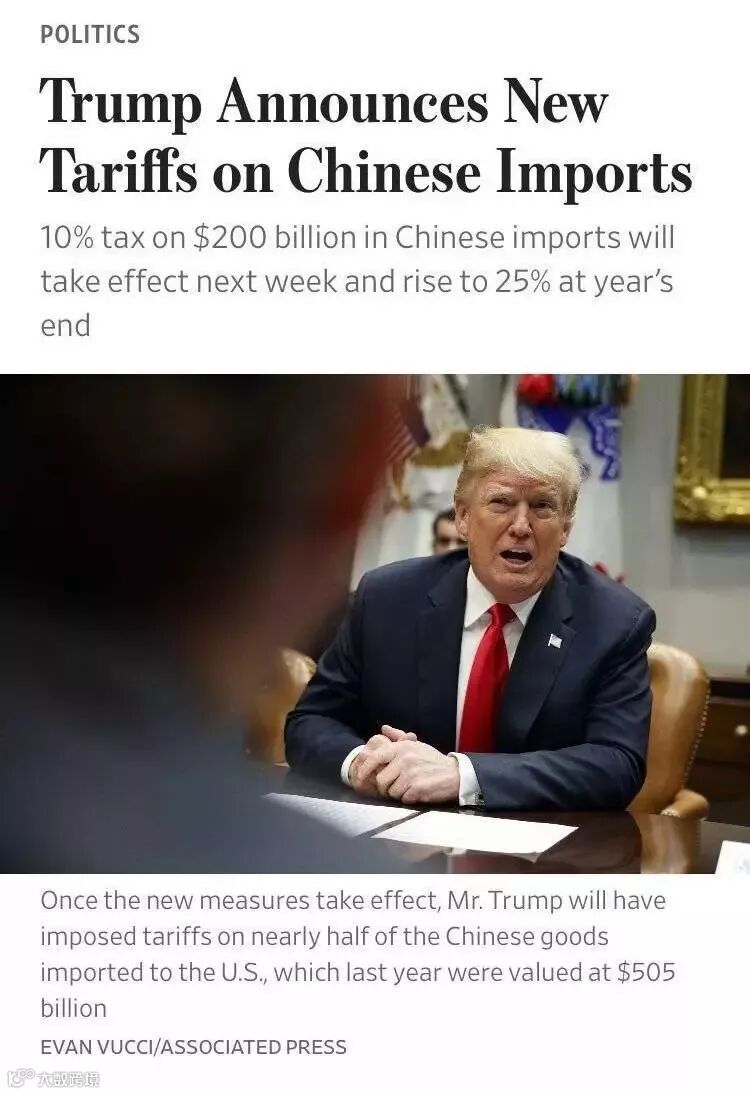 特朗普的立场十分清晰:贸易谈判是一回事,2000亿美元商品的加税计划是另一回事。后者并不会因为前者的启动而搁浅。