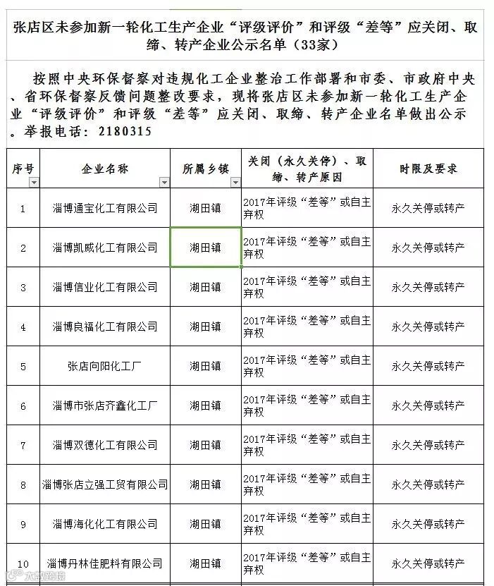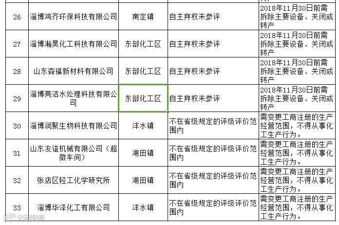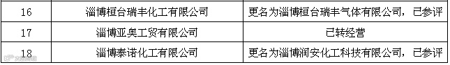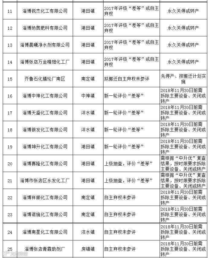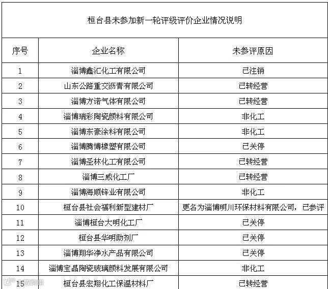 临淄区未参加新一轮化工生产企业“评级评价”应关闭、转型非化工企业名单(8家) |
