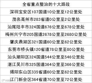 集中治理公路客运、旅游客运、货物运输、危化品运输等6类重点车辆。8月底前,重点检查动态数据异常、问题多发的车辆,对发现违法行为的一律曝光,从严处罚,并且公布了重点整治的十大路段。