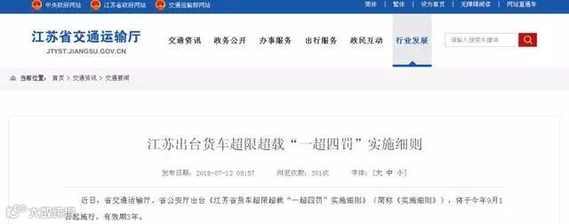 江苏省出台《货车超限超载“一超四罚”实施细则》