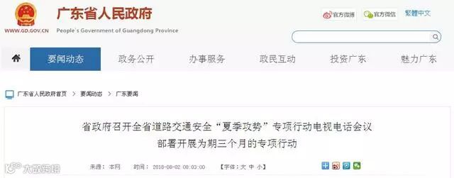 从8月至10月,在广东全省开展为期3个月的道路交通安全“夏季攻势”专项行动。