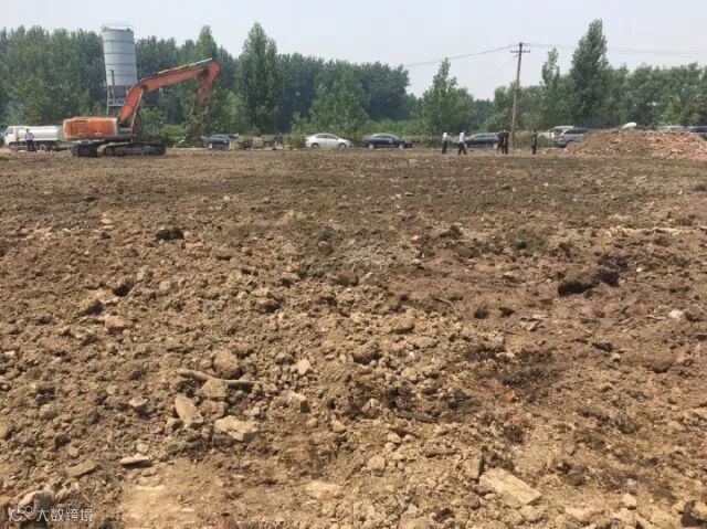 挖掘机在厂区污染土地上覆土。