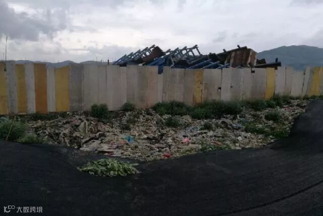 三善堂临时生活垃圾堆场边缘裸露的垃圾。
