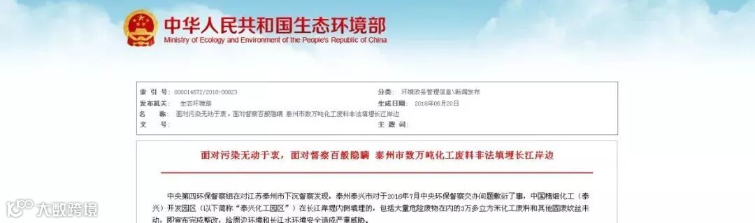 生态环境部10天内2次点名江苏泰兴化工园区,称其在整改过程中隐瞒、包庇、变本加厉!