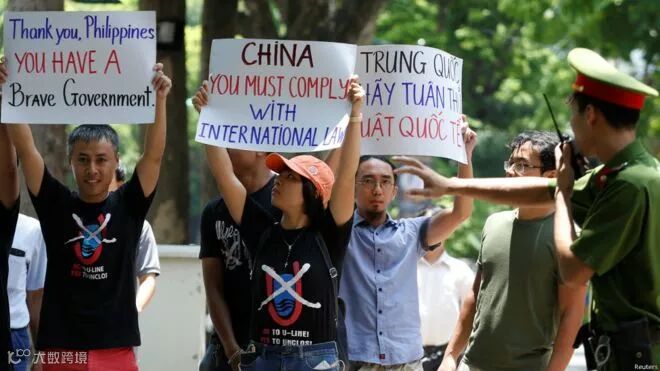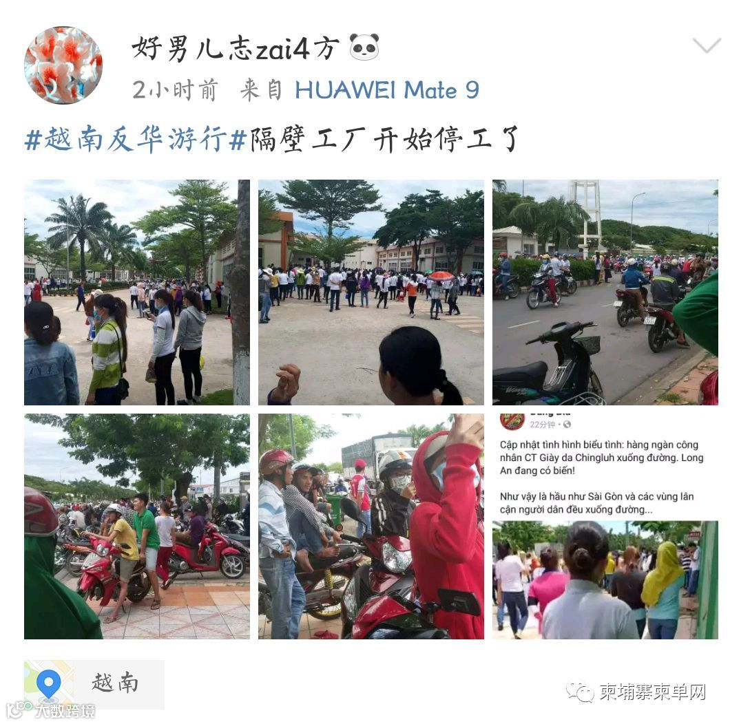 社交媒体上发布的视频与照片显示,越南首都河内、胡志明市及该国其它城市都爆发了大规模抗议活动。一些抗议者举着反华横幅,并高喊“不要中国”或“中国出门”等口号。