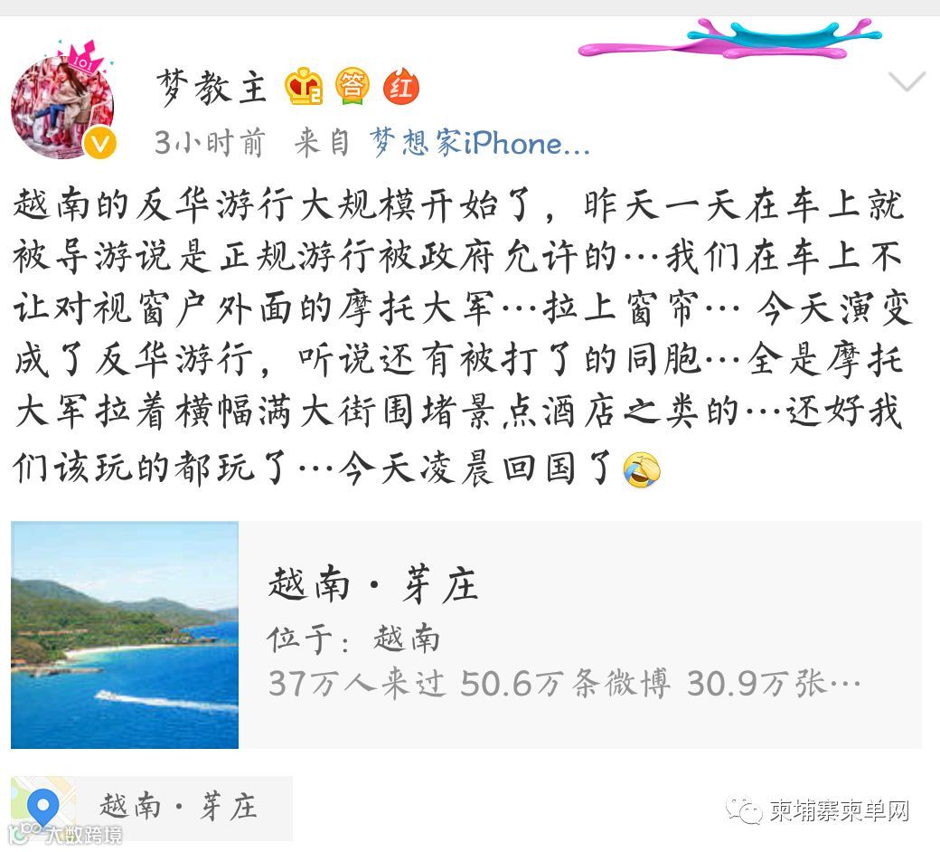 越南的反华情绪目前十分高涨,参加了胡志明市抗议活动的Duong Dai Trieu Lam说:“99年的土地租赁法将直接影响我国主权,让我们落入中国之手,我国人民可能会失去4000年的历史,我们可能会从世界地图上消失。”