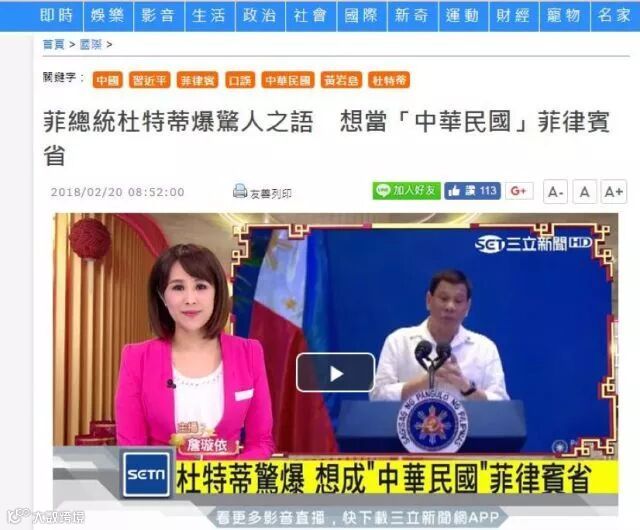 这句话让部分绿营媒体“震惊”,杜特尔特要归降“中华民国”?
