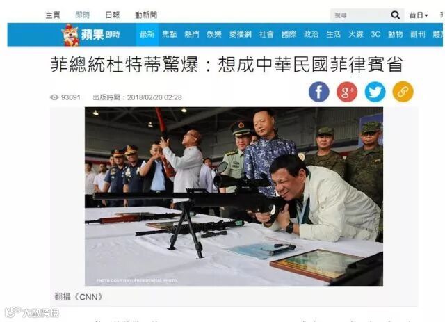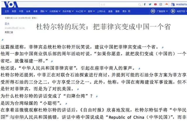 原因很简单,在部分的外媒报道中称,杜特尔特希望菲律宾成为“中华民国”(Republic of China)的一个省。