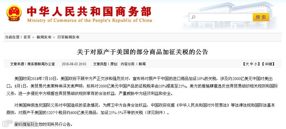 而在此之前,8月3日,国务院关税税则委员会决定对原产于美国的5207个税目约600亿美元商品加征关税,分为25%、20%、10%、5%四档税率。
