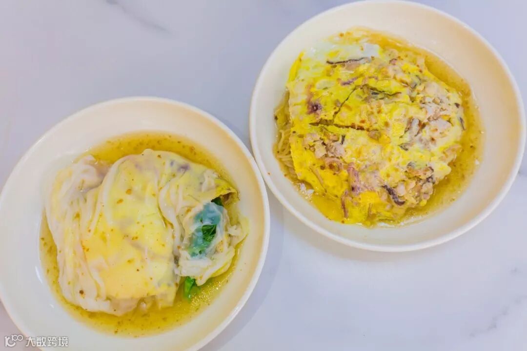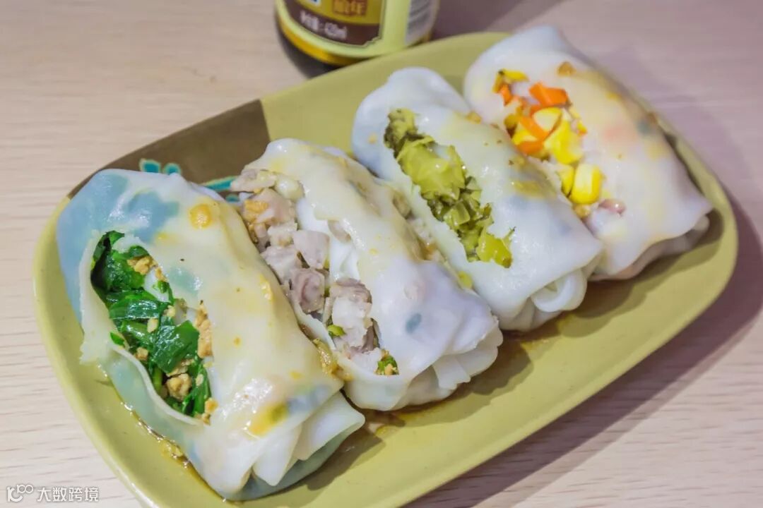 流沙肠粉内配料丰富,包着鸡蛋、香菇、鱿鱼、瘦肉、菜脯等等,再淋上店内秘制酱汁,满满的潮汕风味!