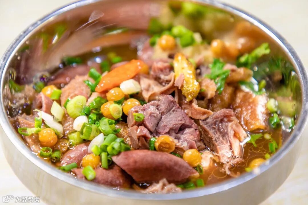 一份牛杂里面牛肚牛肠牛肺和牛腩都有,焖煮得绵软又不失嚼劲,汤汁咸淡适中~美中不足的是搭配的萝卜还不够入味。