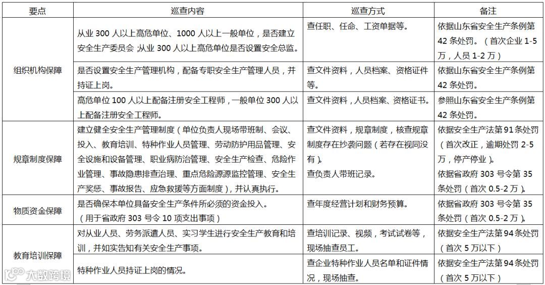 山东省安全生产巡查重点