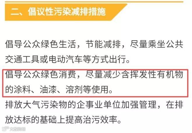 4.倡导公众绿色消费,单位和公众尽量减少含挥发性有机物的涂料、油漆、溶剂等原材料及产品的使用。