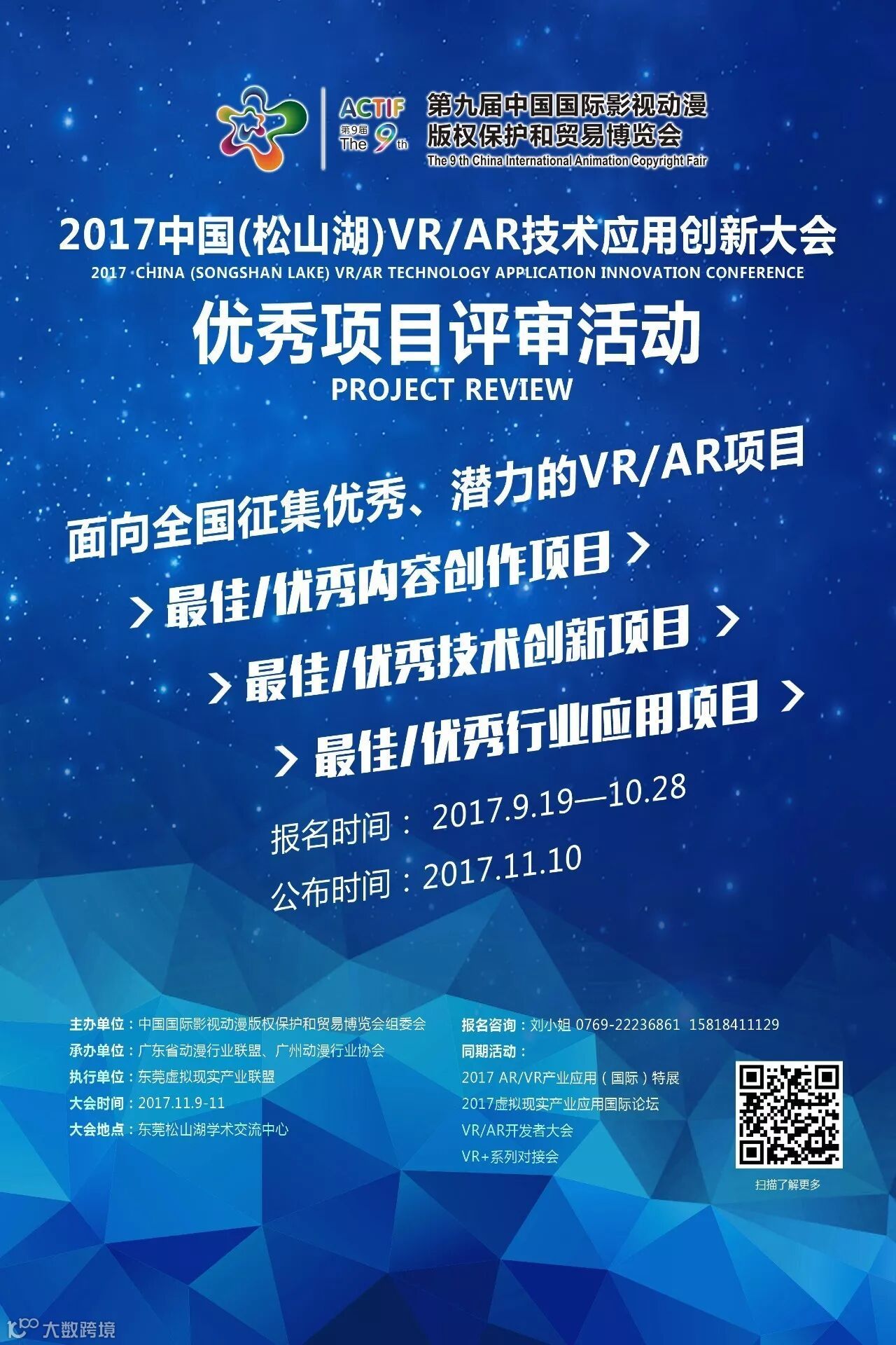 第九届中国国际漫博会2017中国(松山湖)VR/AR技术应用创新大会秘书处 刘小姐,电话:0769-22236861,15818411129