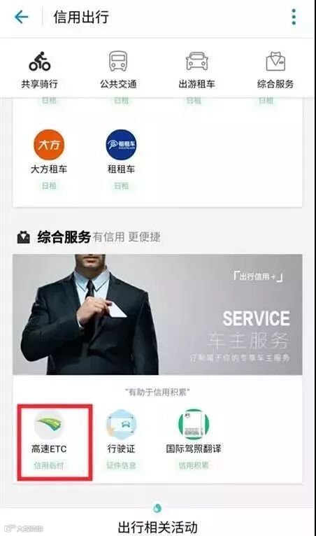 点击“出行”