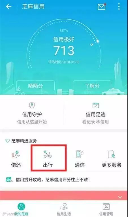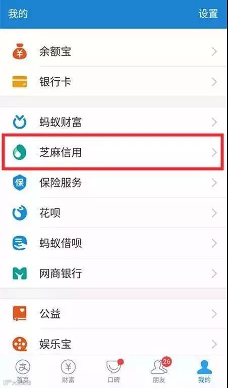 点击支付宝→我的→芝麻信用