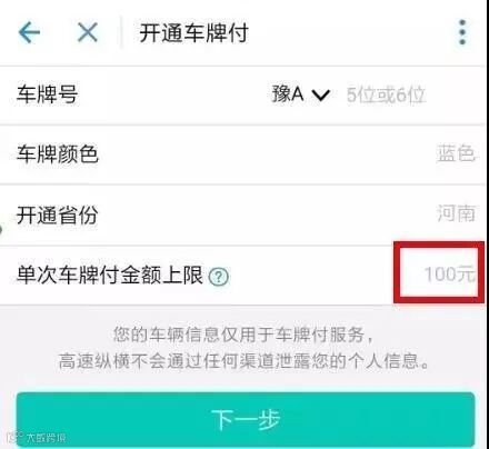 暂时设置的单次车牌付金额上限为100元