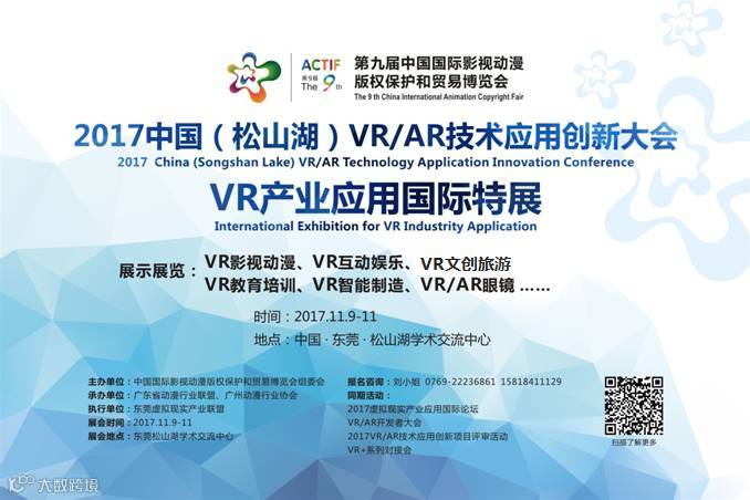 第九届中国国际漫博会VR/AR专业主体活动——2017中国(松山湖)VR/AR技术应用创新大会将于11月9-11日在东莞松山湖隆重举行!