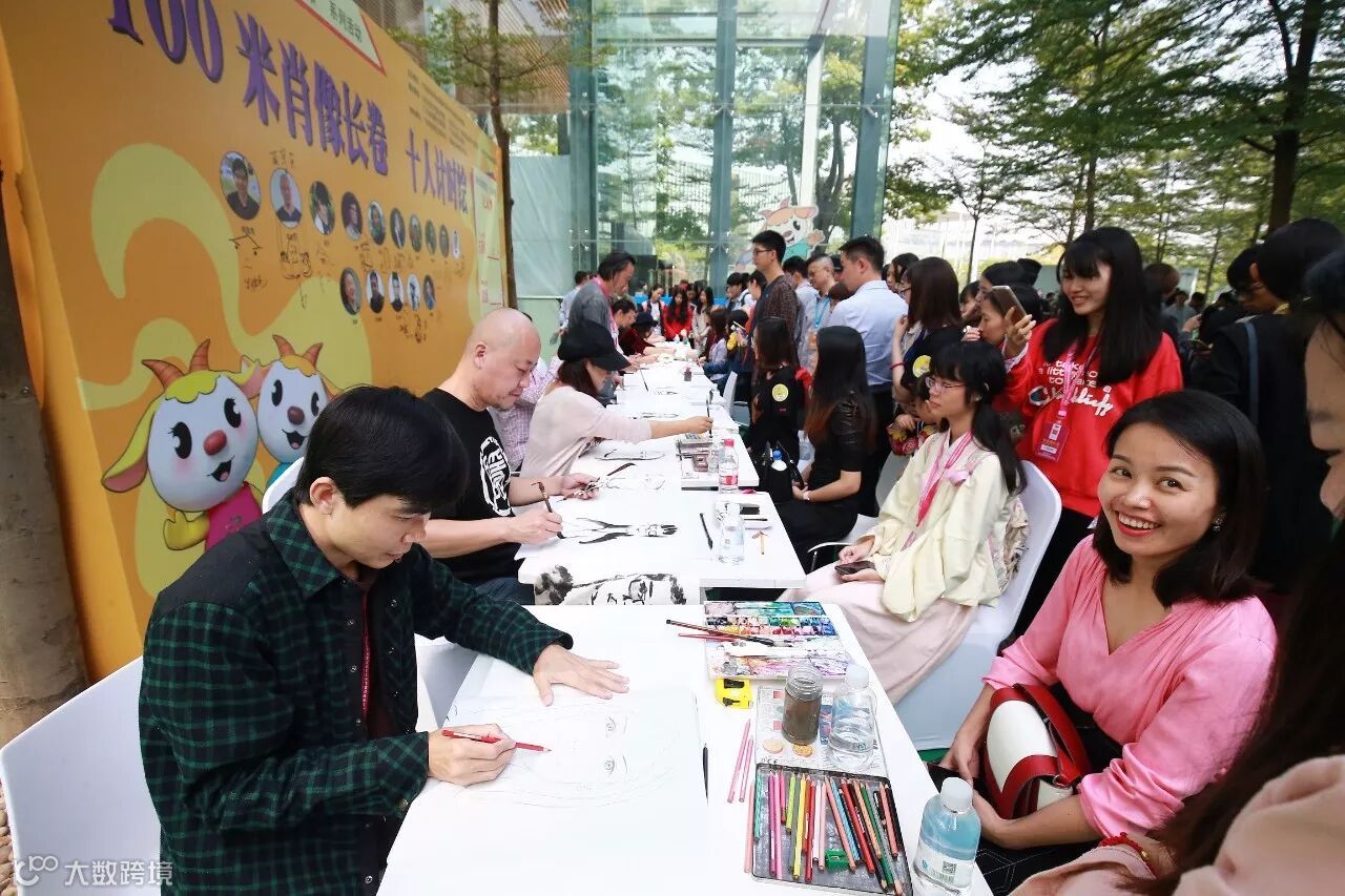 本次活动邀请了十位国内著名的漫画家,用他们最快的速度,现场为市民们进行肖像画创作,计时完成一幅长达100米的画卷,创造一项纪录。这也是许多市民前所未有过的体验,当然是踊跃参与!