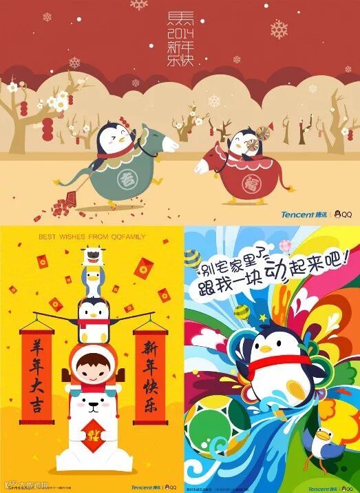 QQ 企鹅形象经过18 年的积累与沉淀,已经成为国内家喻户晓的知名形象。2014 年 QQ 形象还与 BabyQ、多福、奥斯卡、安子和卡纳五位小伙伴组成了 QQfamily。