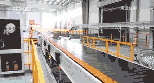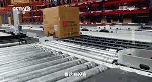 快递箱通过流水线,会自己走向打包区域,贴上面单