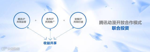 联合投资模式,其实也是我们去年发布会发布的一个重要合作模式,因为腾讯作为一个平台,我们不仅仅是一个自己孵化IP的平台我们希望有更好的其他好的合作伙伴,可以和腾讯动漫一起开发,各位有好的项目或者有好的动漫相关的一些产品的话,我们都可以进行联合的运营,甚至共同推广,共同打造,定制适合市场的IP,最后进行共享。