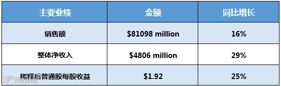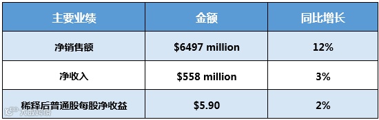 1. 2017上半年,整体净销售额同比增长12%,达到$65亿;