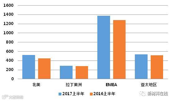 2. 就销售区域数据变化来看,亚太地区的销售增长最为突出,2017上半年净销售额同比涨幅达到9%。
