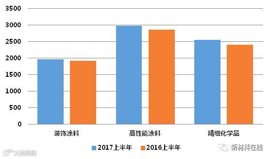 1. 2017上半年,由于装饰涂料与精细化学品的推动,产量提升2%;