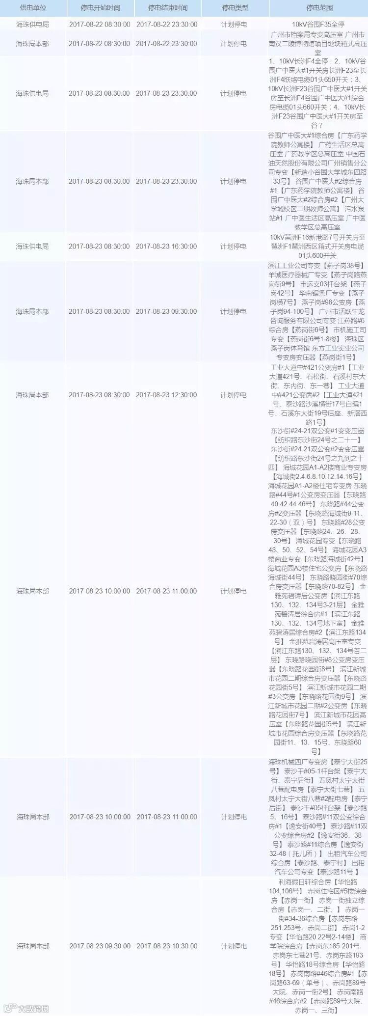 海珠区的停电范围还远远列不完