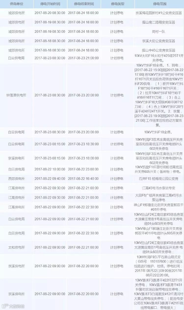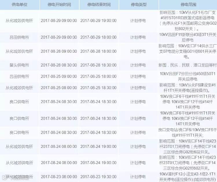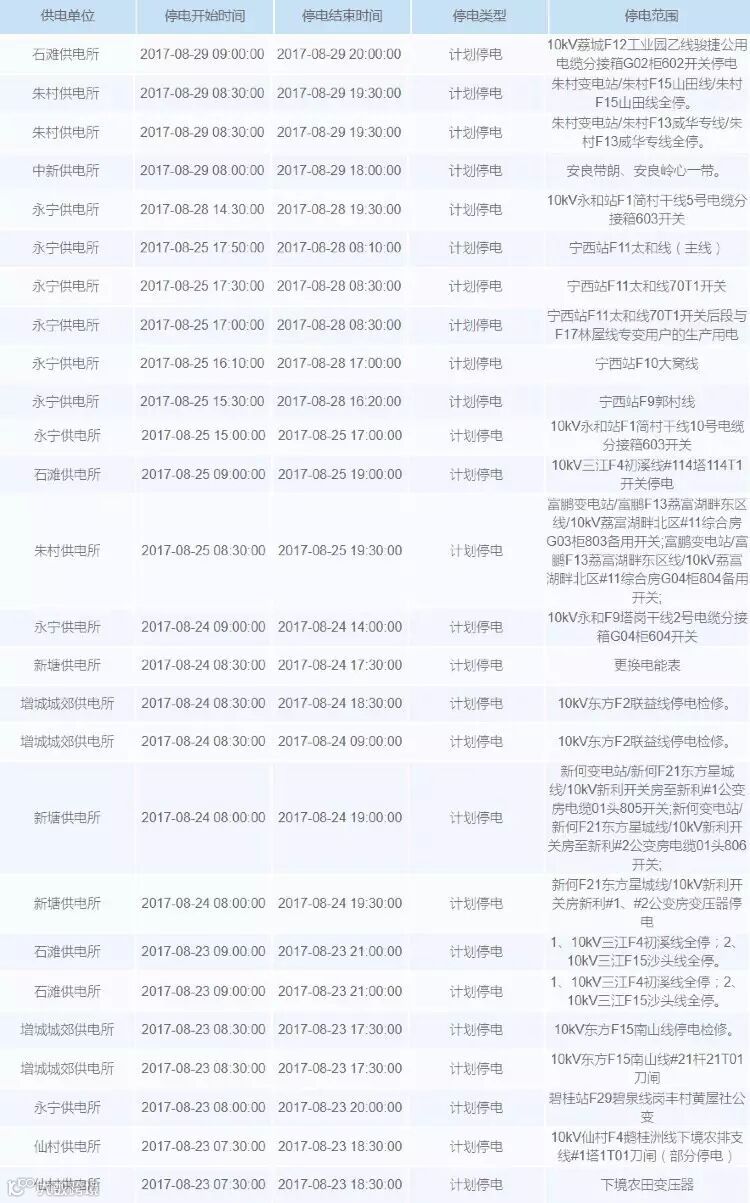 本次计划停电中,影响的地方较多!
