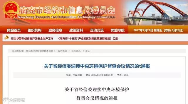 2017年6月29日上午,四川省经信委召开了全省经信系统迎接中央环保督查专项会议,介绍了省经信委相关准备工作情况和工作安排。四川省经信委表示,四川属于中央环保督察第四批进驻的省份,预计7月底或8月初来川。