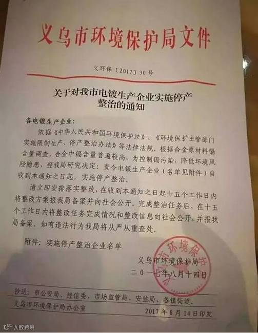 浙江省又开始了新一轮严酷的环境保护治理与整顿,于2017年8月14日下发正式文件,