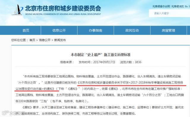 北京要求,城六区及10个新城区的各类道路工程、水利工程、土石方作业和房屋拆迁施工等全面停工,停工4个月(2017年11月15日至2018年3月15日)。对拒不停工项目、扬尘不达标等项目,将暂停相关单位的投标资格。