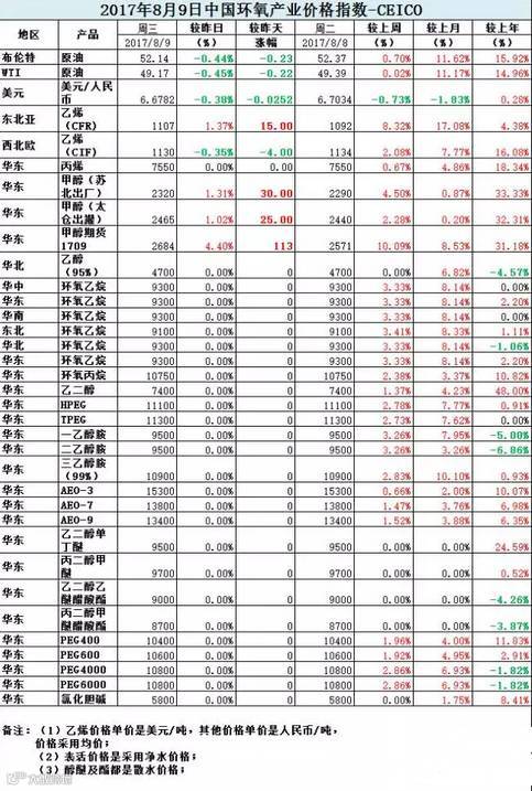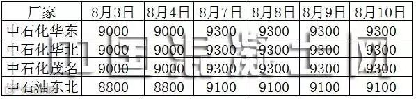 8月3-8月10日国内环氧乙烷报价(单位:元/吨)