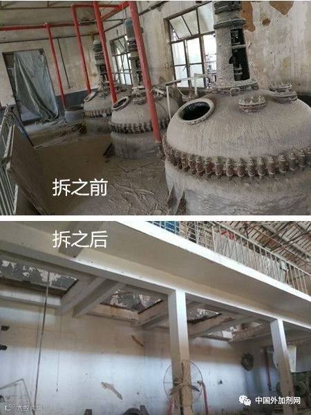 图为常州市五洲环保科技有限公司(原常州市五扬助剂厂)反应釜已全部拆除
