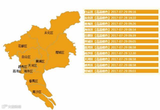 广州集齐了今年第一套全市高温橙色预警信号