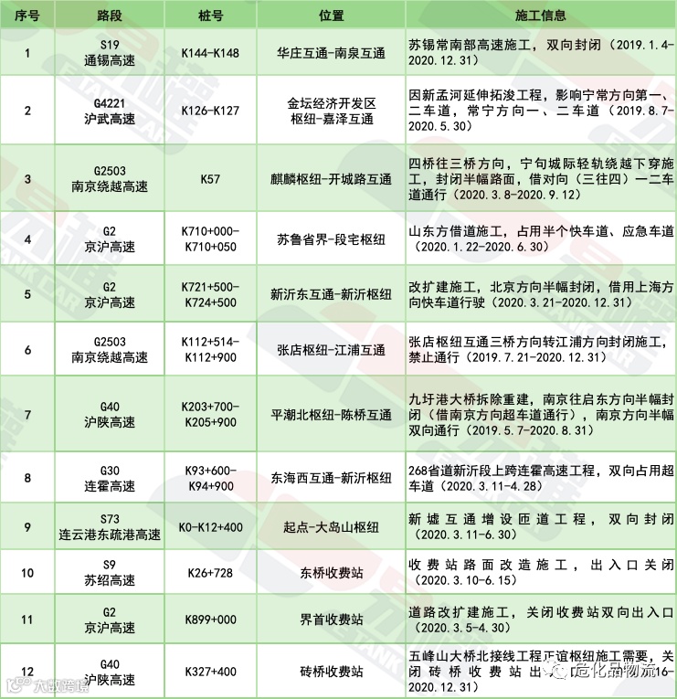 省内有G40沪陕高速、G4221沪武高速等12处高速公路施工路段、节点,请注意现场交通标志提示!国庆+中秋期间高速公路施工路段:
