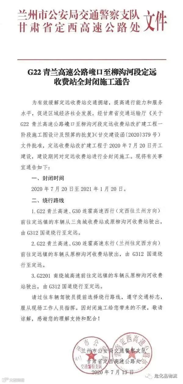 自2020年7月20日起,G22青兰高速公路定远收费站将进行改扩建工程建设。为保障改扩建工程进展顺利,建设期间将对定远收费站进行全封闭施工。