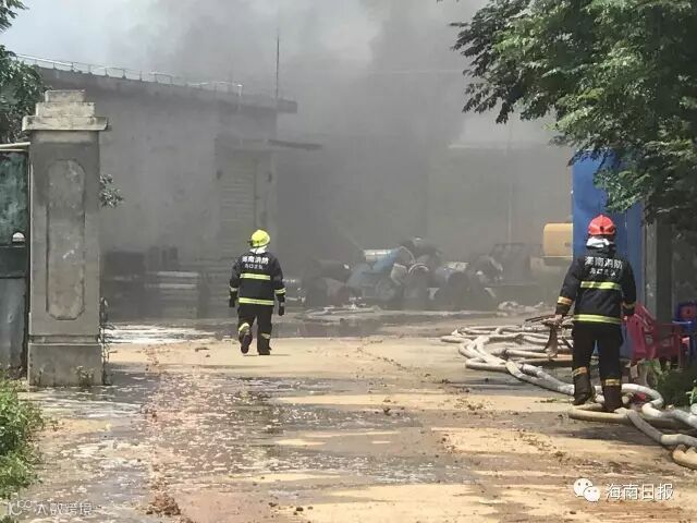 6月21日8时37分,海口市公安消防支队指挥中心接到报警:位于海口市灵山镇大昌村海口金丰原化工原料仓库发生火灾。