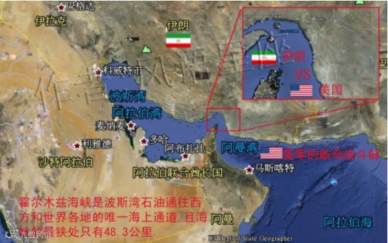 当然,伊朗跟美国的军事力量是没法比的,但是,伊朗有着天然的优越地理位置!他扼守着霍尔木兹海峡!