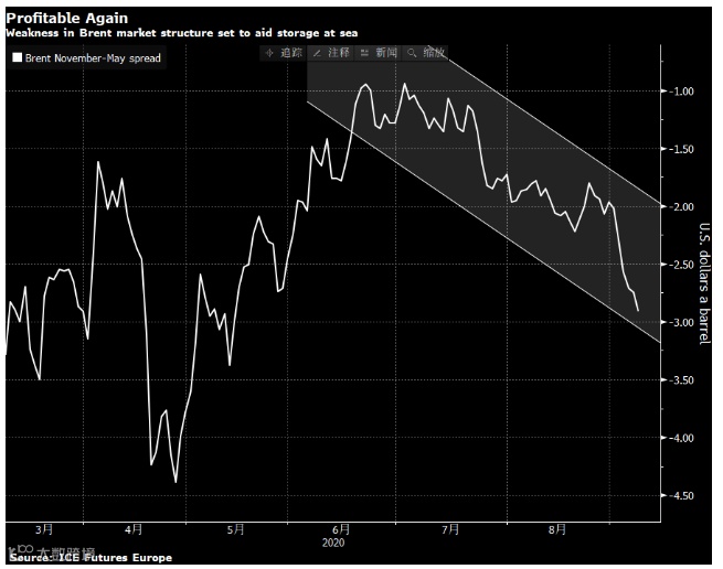 目前,全球基准布伦特原油处于深度看跌模式,现货价格远低于远月期货合约,价差之大已经足以弥补租用1200英尺长超级油轮的名义成本。也就是说:石油贸易商们可以买进原油后,将其存放在船上,以后再出售获利。